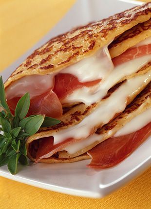 - Sur une moitié de galette, disposez les légumes chauds, puis ajoutez une tranche de mozzarella et une tranche de jambon de Parme. Refermez votre galette.