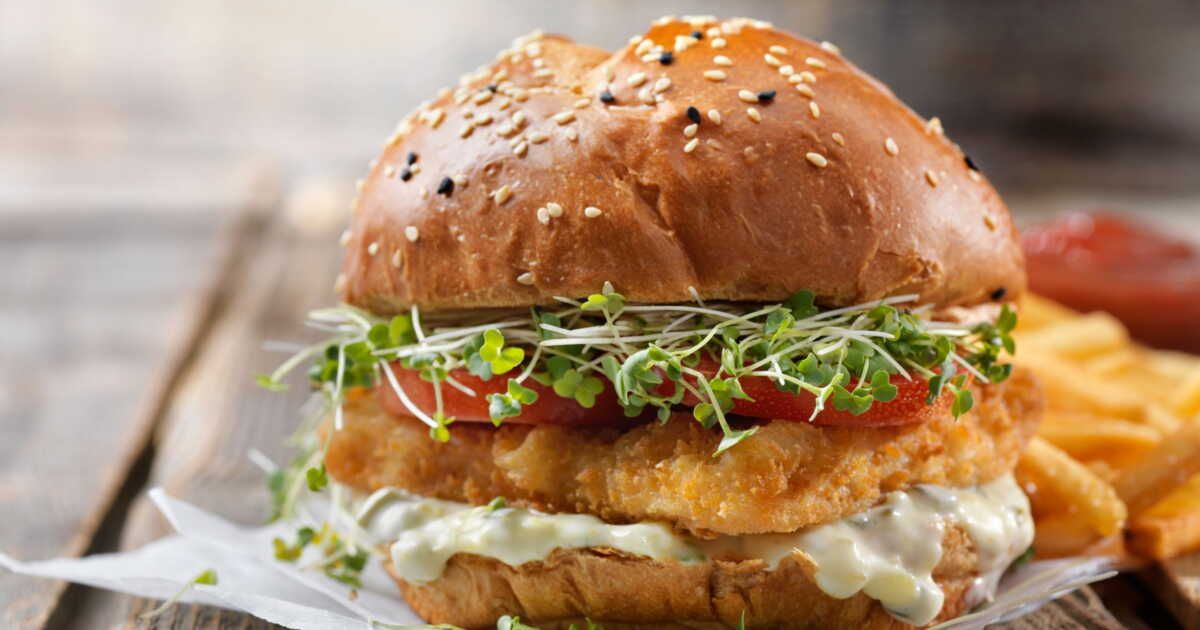 - Garnissage : Foncez à nouveau le poisson dans l'huile à 180 °C pendant 1 minute et demie avant de l'ajouter au burger.