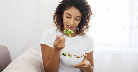 Dans un grand saladier, mélangez les légumes et le fromage avec l'huile d'olive, les herbes de Provence, le sel et le poivre.