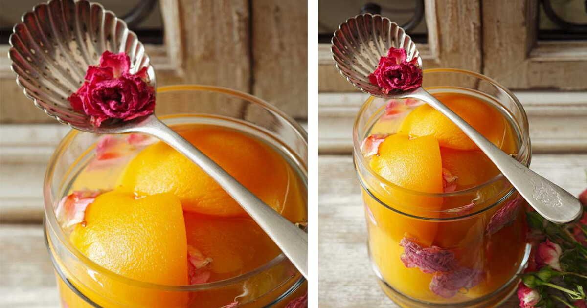 Les pêches, savoureuses et juteuses, sont l'un des fruits emblématiques de l'été. Les transformer en pêches au sirop parfumées à la rose les rend encore plus irrésistibles. Ce dessert subtil et élégant saura séduire toutes les papilles.