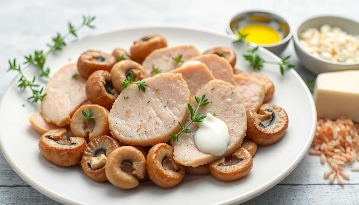 Un vin blanc sec comme le Chardonnay se marie à merveille avec ce plat, soulignant la douceur de la dinde et des champignons.