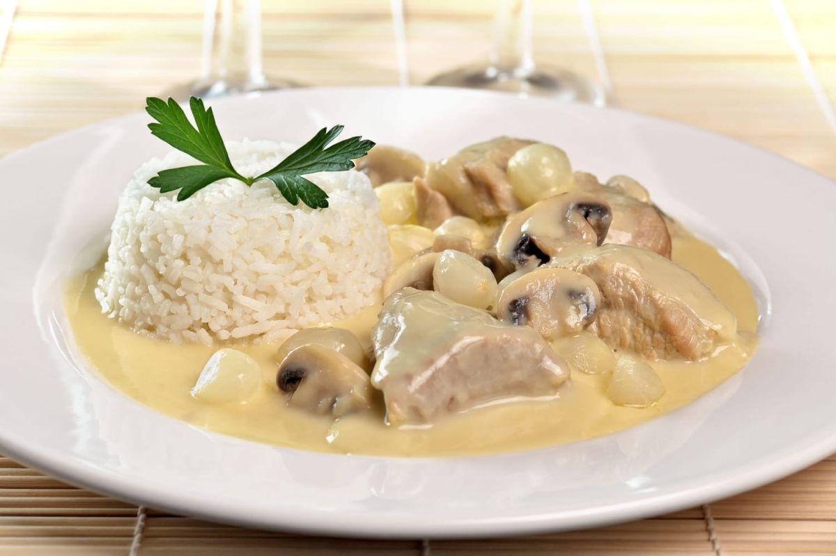 Servez votre blanquette de veau accompagnée de riz basmati et parsemez de ciboulette pour une touche de fraîcheur.