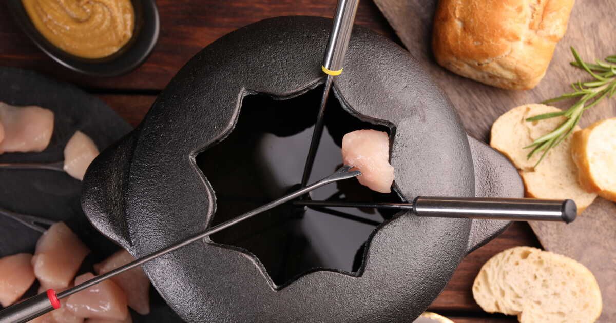 La fondue bressane suit un concept semblable à celui de la fondue bourguignonne, mais au lieu de viande rouge, c'est le poulet qui est à l'honneur. Pour réussir cette recette, il vous faudra paner votre poulet au préalable. Sur votre table, placez un caquelon rempli d'huile à bonne température, idéalement neutre comme l'huile de pépins de raisin, afin de ne pas altérer le goût de la volaille. Pour vérifier que l'huile est parfaite, plongez un pic à brochette : si des bulles se forment, c'est prêt !
