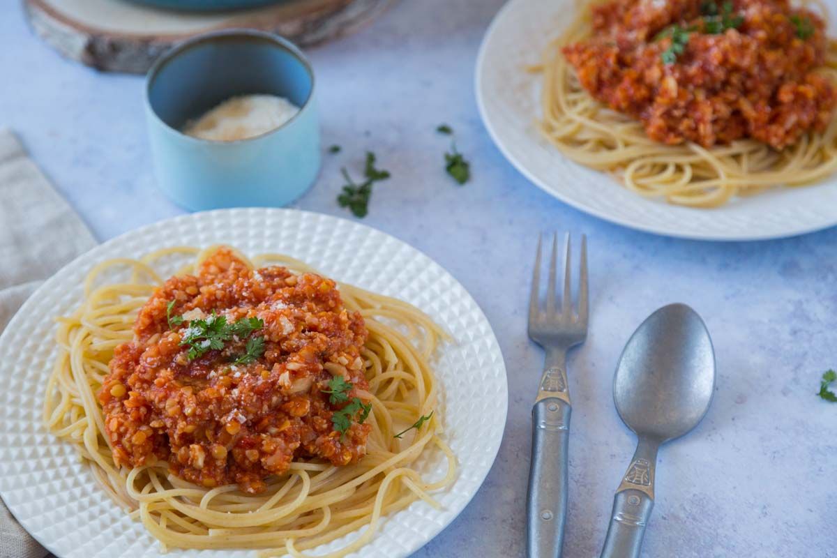 En le réduisant en "semoule" à l’aide d’un robot culinaire, le chou-fleur se transforme pour devenir la base parfaite d'une sauce bolognaise. Associé à des lentilles corail, il apporte non seulement une consistance optimale, mais aussi une belle profondeur de goût. Ce mélange est idéal pour enrichir nos plats tout en restant léger et nutritif.